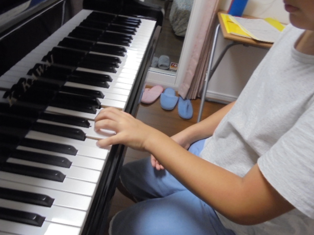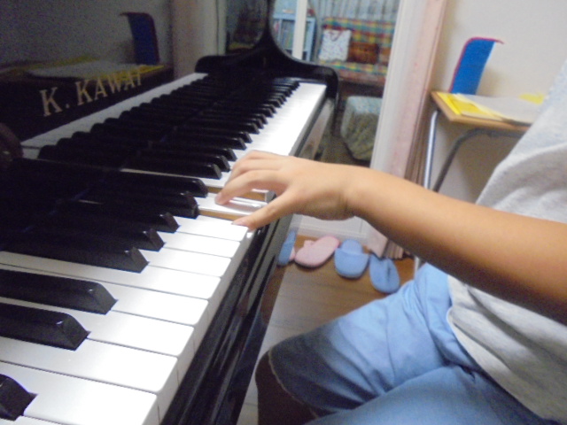 基礎練習の時間が短かったのですが、最近では本人も意識するようになり テクニックの練習では指に太めのゴムを巻いて 練習しています。